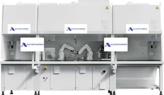 This intelligent robot is designed for the rapid compounding of antibiotics inbulk, suitable for vials.